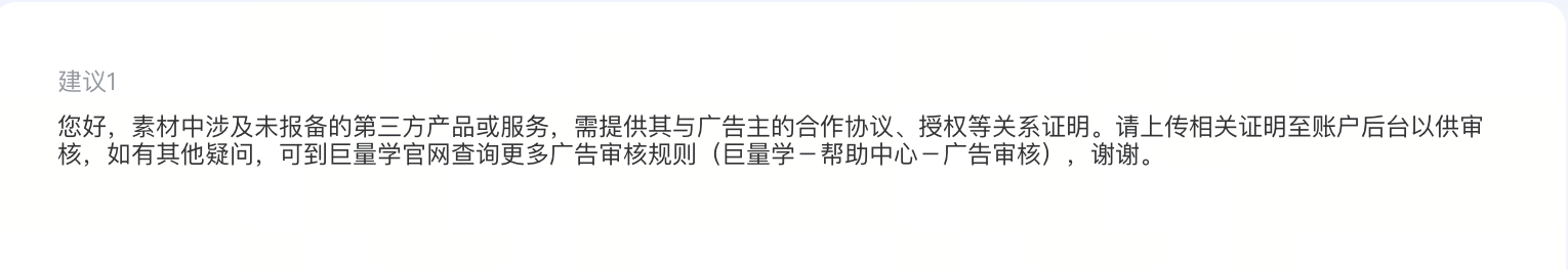 如果审核发现如下问题,是因为域名和广告主体不一致导致。可用如下2种方式之一:1)到【管理后台】后台绑定和巨量广告主体一直的域名。 2)联系【管理后台】客服提供域名授权证明