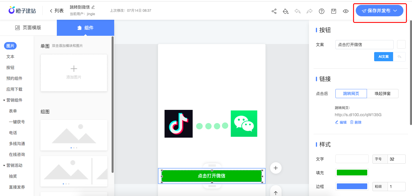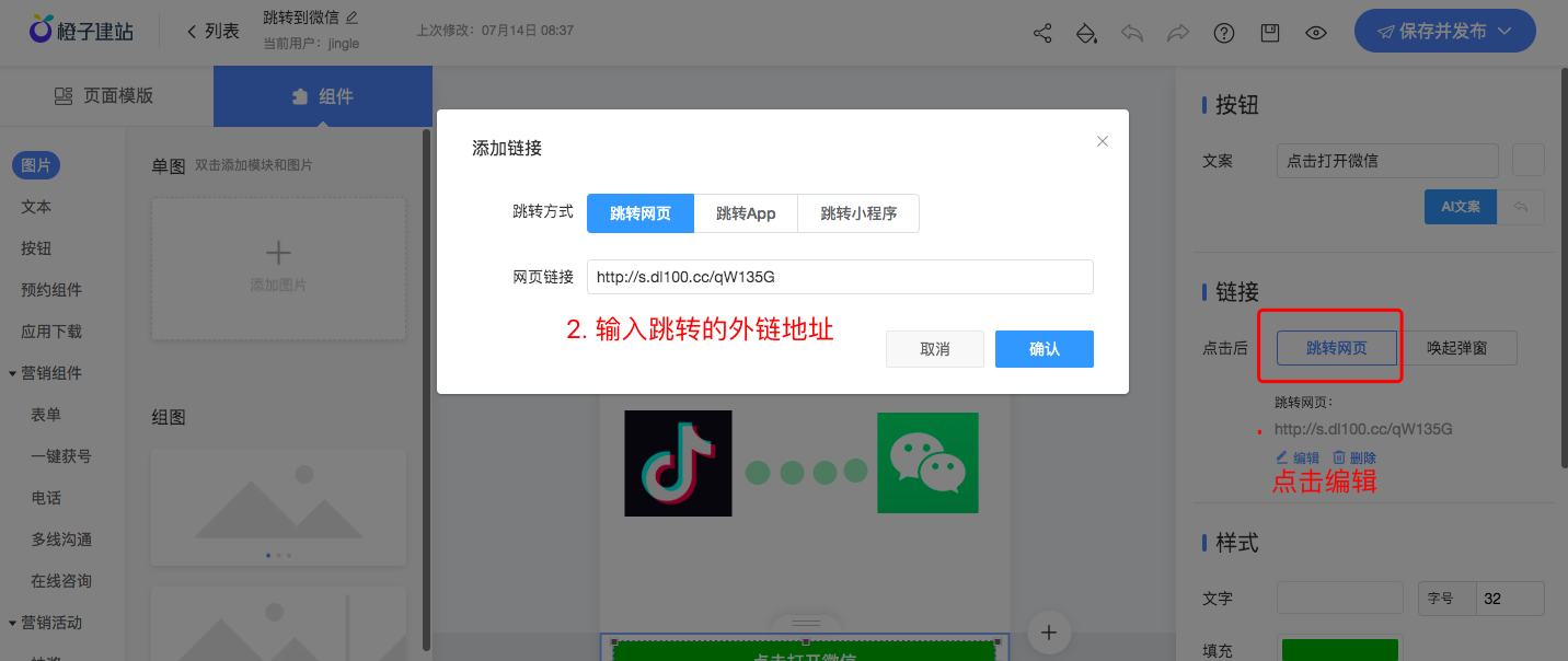 复制橙子建站页面链接,回到【管理后台】后台,创建短链即可
