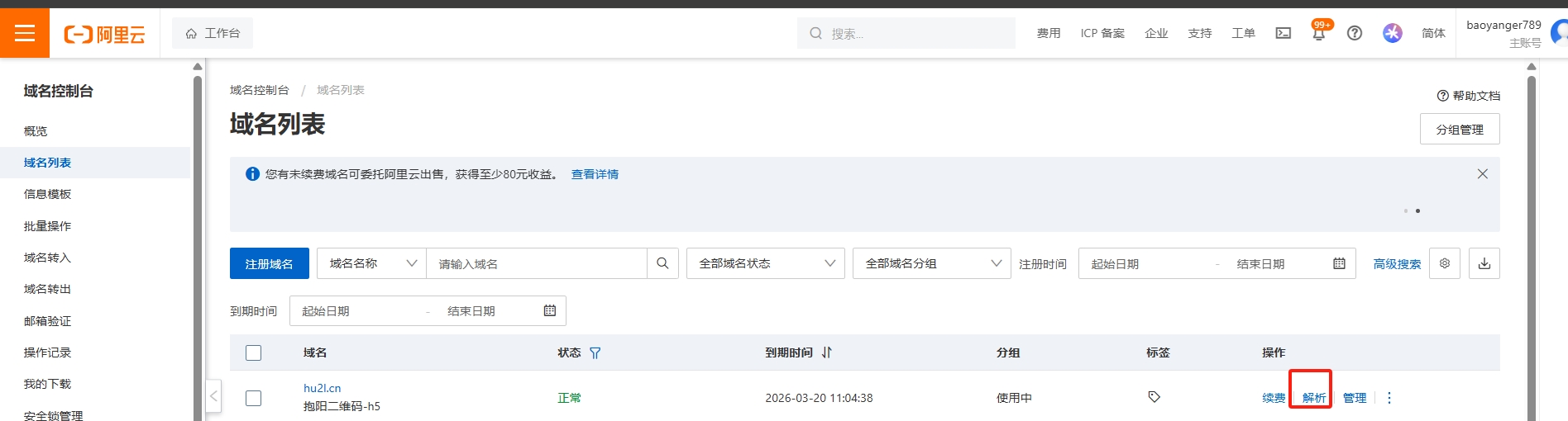 如下是阿里云注册备案域名流程,点击 注册完成后需求去备案域名,备案需要备案号,可以直接购买备案号(100元/个),或者购买最便宜的主机(99元/年)送5个备案号(推荐),根据备案流程完成备案 进入管理后台->专属设置-域名管理 输入你自有的域名(必须为阿里云备案域名),可以为二级子域名,这样可以不影响你原有的业务。例如你的域名为 mydomain.com,可以这里提交一个a.mydomain.com作为短链域名. 复制我们的CNAME,到阿里云配置 到阿里云域名列表,点击解析 设置CNAME记录 设置完成后,等待我们审核通过即可使用 如果需要设置SSL证书,请提供nginx证书给客服,等待我们技术配置, 查看如何获取SSL证书 如果你的域名不是阿里云注册备案的,请参照 阿里云备案帮助文档,或者联系阿里云客服备案